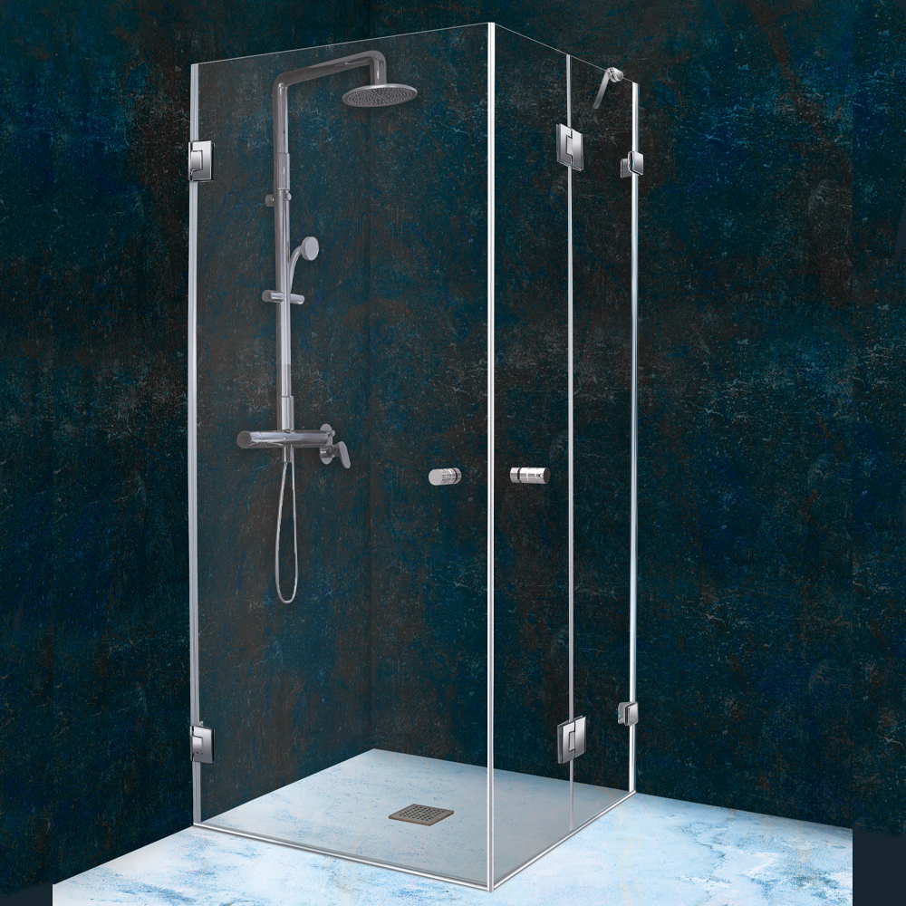 מקלחון פינתי הכולל : קבוע ודלת בשילוב דלת נפתחת 90 מעלות פנימה והחוצה, מראה נקי