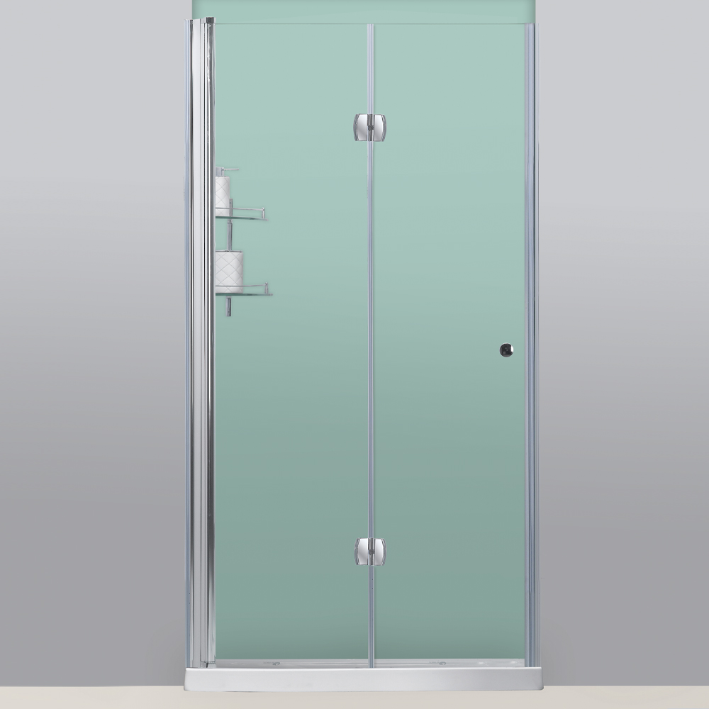 מקלחון חזית פרופילים בשילוב צירים- "המקלחון הנעלם" צד אחד כולל דלת מחוברת לדלת לפתיחה וסגירה מקסימלית נצמד לקיר בגומי בלון .