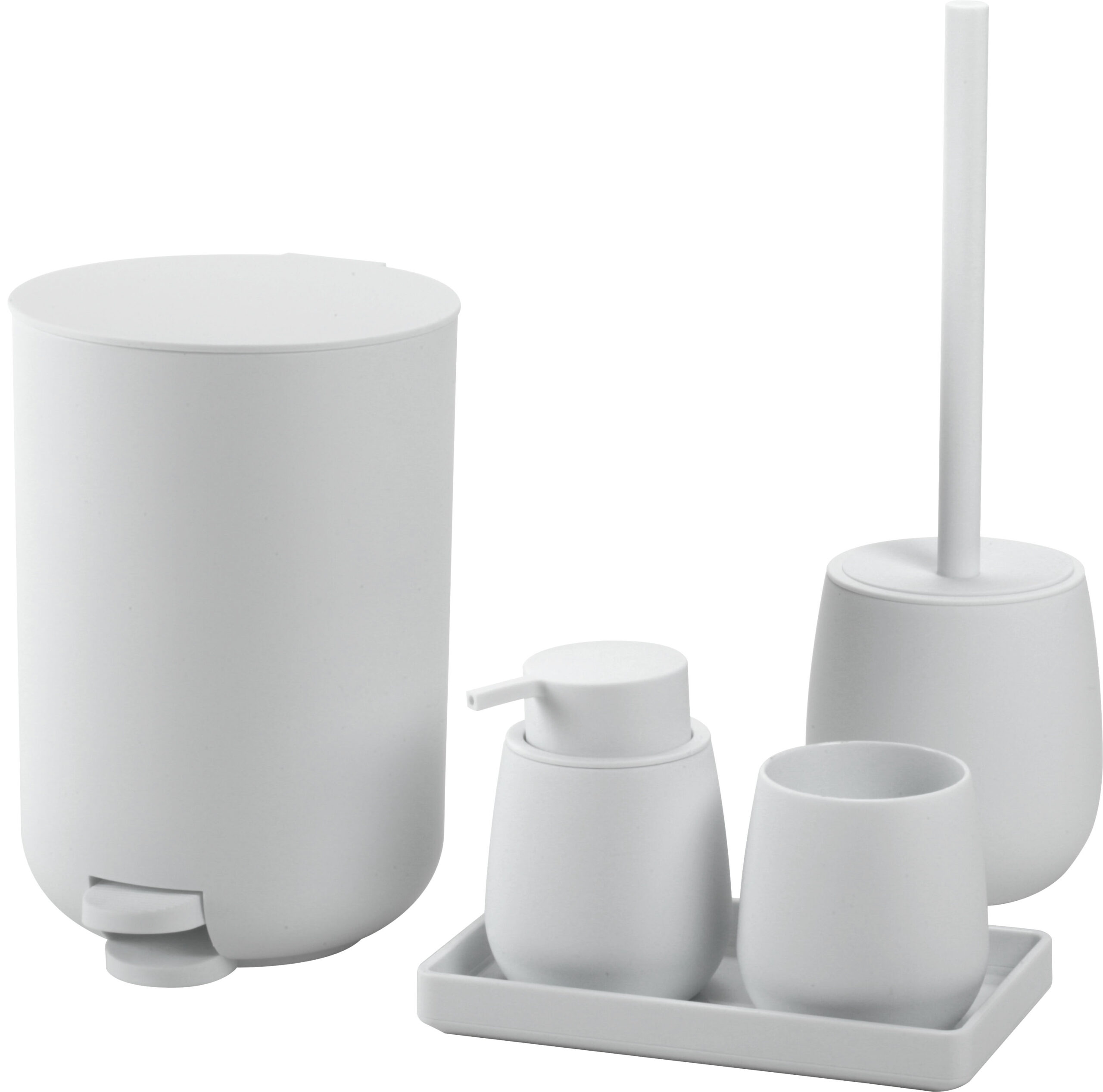 - הסט כולל: פח אשפה 3 ליטר, מברשת אסלה, דיספנסר, כוס ומגש.